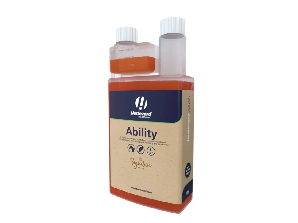 Hestevard Ability je krmný doplněk pro koně, který obsahuje vysoce biologicky dostupný zapouzdřený kurkumin v kombinaci s kyselinou hyaluronovou.