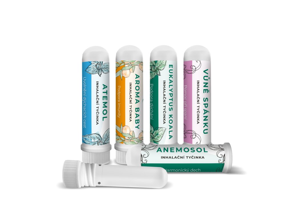 Aromaterapie pro děti - podpora dýchání, imunity a lepšího spánku. V sadě pěti inhalačních tyčinek naleznete éterické oleje a jejich směsi vhodné pro použití dětmi. Díky speciálním recepturám můžete dětem usnadnit dýchání při respiračních potížích, podpořit jejich imunitu, zklidnit je ve stresové situaci nebo jim zpříjemnit usínání. V každé tyčince je cca 1 ml éterických olejů. Tyčinky obsahují 5 směsí éterických olejů vhodných pro děti: ATEMOL uvolňuje dýchací cesty. Tato směs éterických olejů z badyánu, mateřídoušky, kajeputu a dalších je vhodná při kašli. Mnohé z použitých olejů jsou známé svými sekretolytickými účinky, pomáhají při zahlenění. AROMA BABY - sladce citrusově vonící směs éterických olejů vhodná pro děti pomáhá bojovat proti škodlivým mikroorganismům v dýchacích cestách. Litsea cubeba, mateřídouška, borovice a eukalyptus mohou zlepšit dýchání i podpořit psychický stav dítěte. EUKALYPTUS KOALA celkově posiluje organismus a zejména dýchací systém, napomáhá vykašlávání. VŮNĚ SPÁNKU - tato kompozice olejů z majoránky, levandule, senných květů, cedru a citronové trávy napomáhá zklidnění, uvolňuje napětí. Tím může podporovat kvalitní spánek. ANEMOSOL je osvěžující směs éterických olejů pro podporu mikrobiální čistoty ovzduší vhodná při ztíženém dýchání a nástupu rýmy v období nachlazení. Obsažené éterické oleje podporují dýchání i zlepšují náladu.Doplňkové parametry