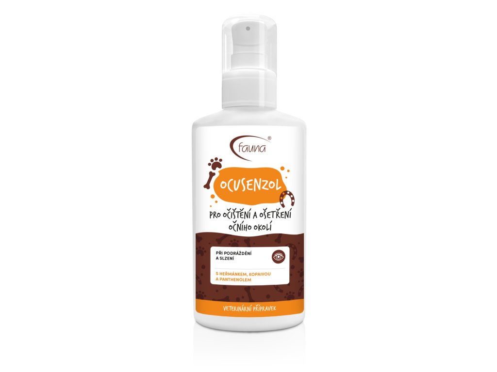 Heřmánkový roztok s kopaivou a panthenolem při slzení a podráždění očního okolí pro psy, kočky, koně i králíky. Některá zvířata jsou více náchylná k podráždění očí, např. v prašném prostředí či v období pylové sezóny. Následkem je slzení, případně začervenání očního okolí. Zejména u bílých zvířat je pak patrná změna barvy srsti do hněda v oblasti u vnitřního koutku oka. K ošetření podrážděného očního okolí a očištění srsti zabarvené slzením je určen právě OCUSENZOL založený na zklidňujícím účinku HEŘMÁNKU PRAVÉHO a KOPAIVY. Kyselina askorbová (VITAMÍN C) napomůže s očištěním srsti. Cílové druhy zvírat: koně, psi, kočky, drobná domácí zvířata (morče, králík) Veterinární přípravek schválený ÚSKVBL (369-22/C)Doplňkové parametry