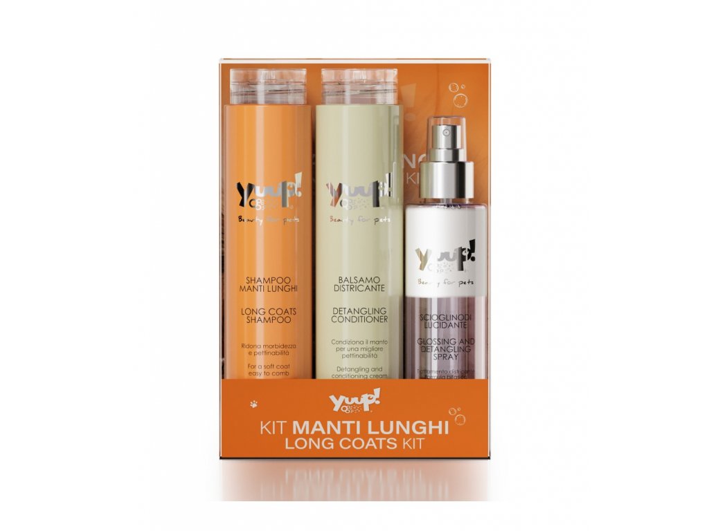 Balíček pro dlouhou srst obsahuje: šampon na dlouhou srst Yuup HOME 250ml, restrukturalizační a rozčesávací kondicioner Yuup 250 ml HOME, lesk + rozčesávací sprej pro psy Yuup 150 ml HOME.Doplňkové parametry