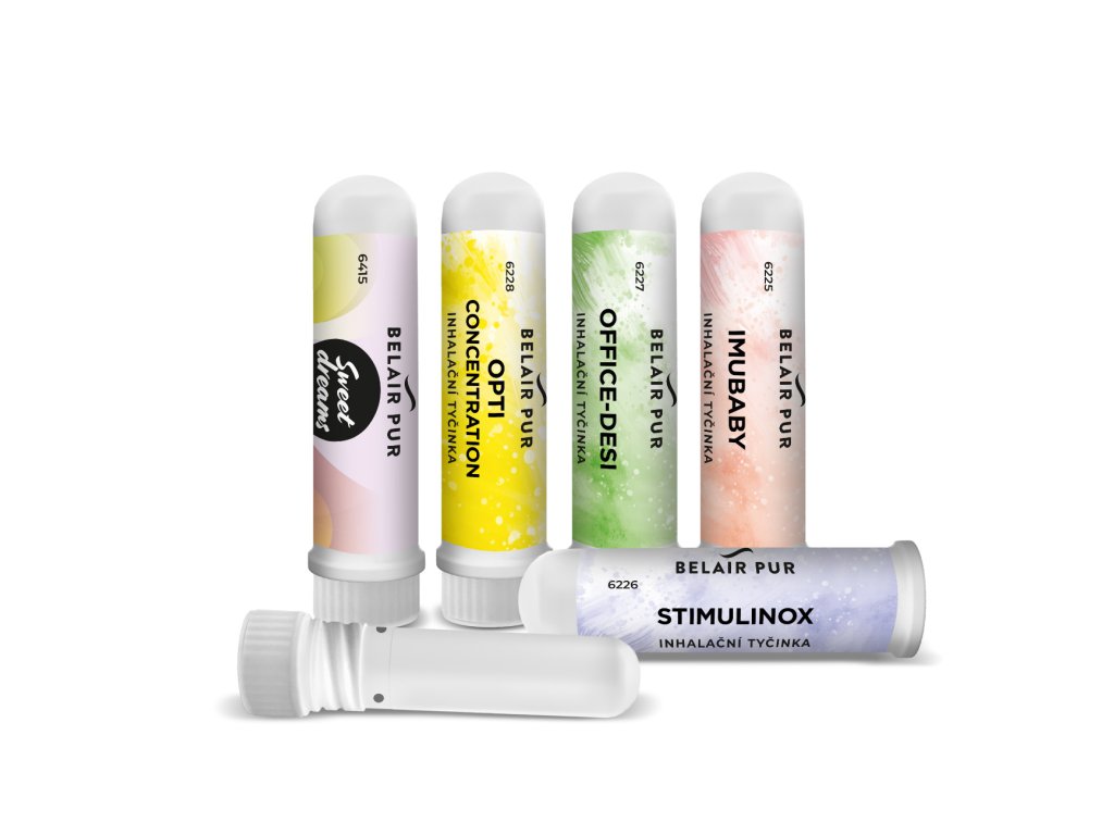 Sada inhalačních tyčinek pro podporu imunity celé rodiny. V sadě pěti inhalačních tyčinek naleznete směsi esenciálních/éterických olejů pro podporu imunity. Obsažené oleje podporují dýchací systém, posilují slizniční imunitu a napomáhají plynulému dechu. Přes čichové centrum mohou uvolnit dutiny, zklidnit podráždění způsobené rýmou. Oceníte je nejen v období zvýšeného výskytu respiračních onemocnění. Tyčinky obsahují 5 směsí esenciálních olejů vhodných pro podporu imunity celé rodiny: SWEET DREAMS - Směs esenciálních olejů pelargonie, amyris, citron, heřmánek římský. Emoční pelargonie dodávající pocit klidu, jistoty, amyris pomáhající při duševním tlaku, citron čistící mysl a srdce, rozptylující zmatek, heřmánek pomocník při šokových stavech, stresu a hyperaktivitě. Kompozice uklidňujících esenciálních olejů při neklidných stavech, depresích, nevyrovnanosti, při špatném spánku. IMUBABY - Litsea cubeba se svým intenzivním virucidním účinkem navozuje osvěžující citrusovou vůni. Ta je podpořena sladce kyselým citronem, lesní vůní borovice, vzduch čistícím eukalyptem a kajeputem. Antiseptický anýz, mateřídouška a především tymián zajišťují antiseptické, pročišťující účinky. STIMULINOX - Máta stimulující nervový systém spolu s klid dodávající levandulí a pelargonií, vytvářejí vhodné prostředí pro posilující, klidný heřmánek. Vytvoření klidné, harmonické, povzbuzující atmosféry, která stimuluje organismus, je cílem této kompozice. OFFICE-DESI - Osvěžující citron a grapefruit s dech podporujícím eukalyptem, stimulujícím kajeputem a rozmarýnem, tvoří kompozici antivirální, antibakteriální podporující koncentraci, která nám pomůže zpříjemnit čas při pracovním nasazení. OPTI-CONCENTRATION - Harmonizující bergamot s klid dodávající levandulí, podpořený stimulujícím grapefruitem a tonizující bazalkou, vytvářejí kompozici vhodnou k podpoře koncentrace, radostnější nálady.Doplňkové parametry