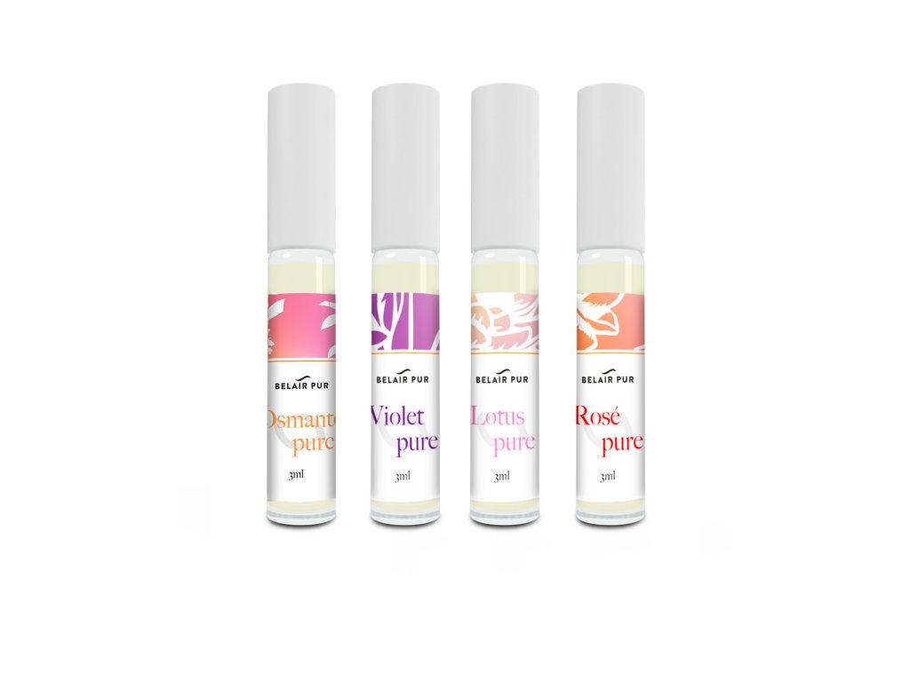 Sada parfémů květinových vůní. Sada obsahuje: Esenciální parfém LOTUS PURE (3 ml) - Lotos představuje čistotu těla, řeči, mysli. Je symbolem duchovního rozvoje. Svůj růst začíná na dně vodní nádrže, prochází vodou a rozkvétá ve světle slunce. Uklidňující a harmonizující lotosová esence podpořená svěžím kosatcem je doplněna sladkými květy mimózy, omamným jasmínem a ylangem. Vše se nese na tónech láskyplné růže a pelargonie. Celá kompozice je fixována tóny medu a odlehčena pomerančem. Esenciální parfém ROSÉ PURE (3 ml) - Podmanivá vůně květů bulharské růže nesoucí se na tónech pelargonie, kosatce a ylangu. Kompozice je odlehčená osvěžující limetkou, citronem a pomerančem. Lehký tonizační účinek přináší elemi, které neznatelně prochází květinovou vůní. Růže je nazývána královnou květin. Její opojná vůně vytváří láskyplnou atmosféru, která nás zahalí do jemné růžové mlhy. Esenciální parfém VIOLET PURE (3 ml) - Rozkvetlá jarní louka se svěží květinovou vůní nesoucí intenzivní esenci živých květů fialky nás přenese do dětství našich babiček. Uklidňující fialka podpořená esencí kosatce, sladké mimózy a omamného ylangu tvoří spolu s růží a pelargonií esenci ženskosti. Sladká vůně je odlehčena elemi, citronem a pomerančem. Esenciální parfém OSMANTE PURE ( 3 ml) - Exotická sladce ovocná květinová vůně OSMANTU povzbuzuje k lepší náladě, veselosti. I přes lehce afrodiziakální náboj jde o vůni uklidňující, posilující koncentraci a rozvahu. Regenerační a tonizační účinky oceníte při náročných chvílích.Doplňkové parametry