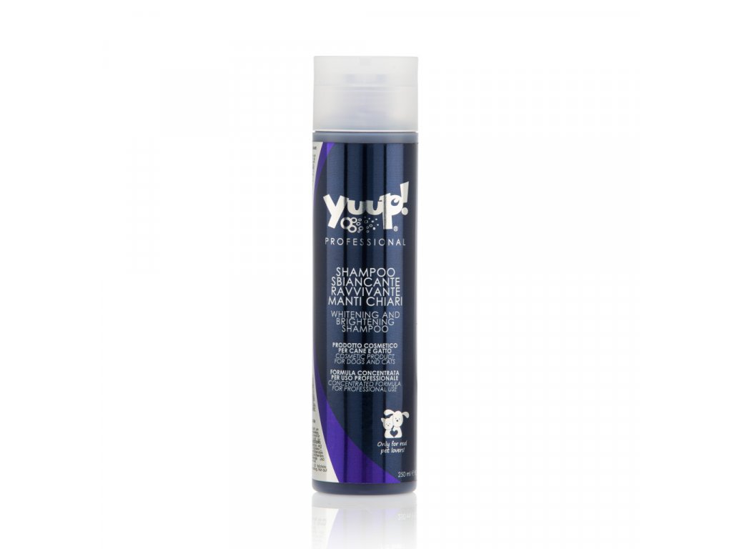 Šampon s bělícím efektem, ideální pro zvýraznění světlé srsti a pro zamezení jejího žloutnutí Typ srsti: vhodné pro bílou a světlou srst, pro každý typ srsti, pro kočky a psy. Možnost užití na nežádoucí černohnědé odlesky. Klíčové ingredience: pigment proti zažloutnutí, výtažky z bambusu a lotosových květů, kvarternizovaný keratin, vitamíny C + E + panthenol. Neobsahuje odbarvující činidla a peroxid vodíku. Účinky: čistící, bělící, rozjasňovací. Nezanechává skvrny. Ředění: doporučeno 1:10 / maximálně 1:20. Neředěný přípravek lze použít přímo na zažloutlá místa.Doplňkové parametry
