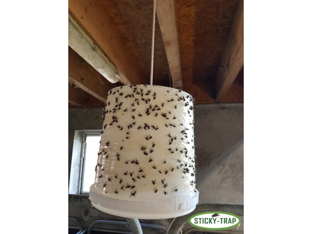 Po zanesení bílého kyblíku ulovenými mouchami jej lze snadnou oškrábat špachtlí a nanést novou vrstvu lepidla. Past je tak levná a ekologická v porovnání s běžně prodávanými mucholapkami.