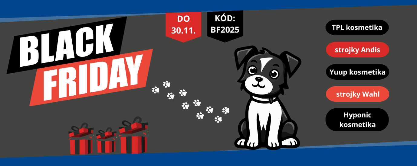 Ať už jste chovatel, groomer nebo milující páníček, naše Black Friday sleva vám pomůže nakoupit kvalitní produkty za skvělou cenu a možná objevíte i nové oblíbence na vánoční dárky. 🎁🐾