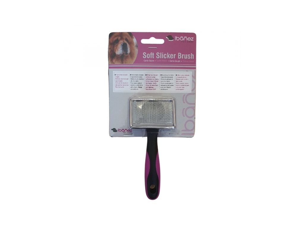Ibánez drátkový kartáč s extra jemnými a měkkými drátky s protiskluzovou gumovou rukojetí je ideální pro použití na mokrou srst při sušení. Pomáhá rozčesat zacuchaná místa, odstraňuje staré odumřelé chlupy a dodává srsti lesklý vzhled. Délka drátků 12 mm.Doplňkové parametry
