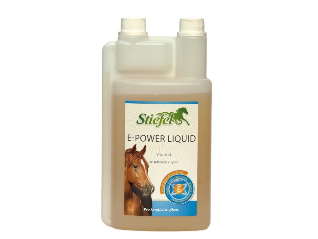 Stiefel E-Power plus pro výkon a kondici.  Přídavek energie s vitamínem E, zinkem a selenem  pro chovné klisny a hřebce.