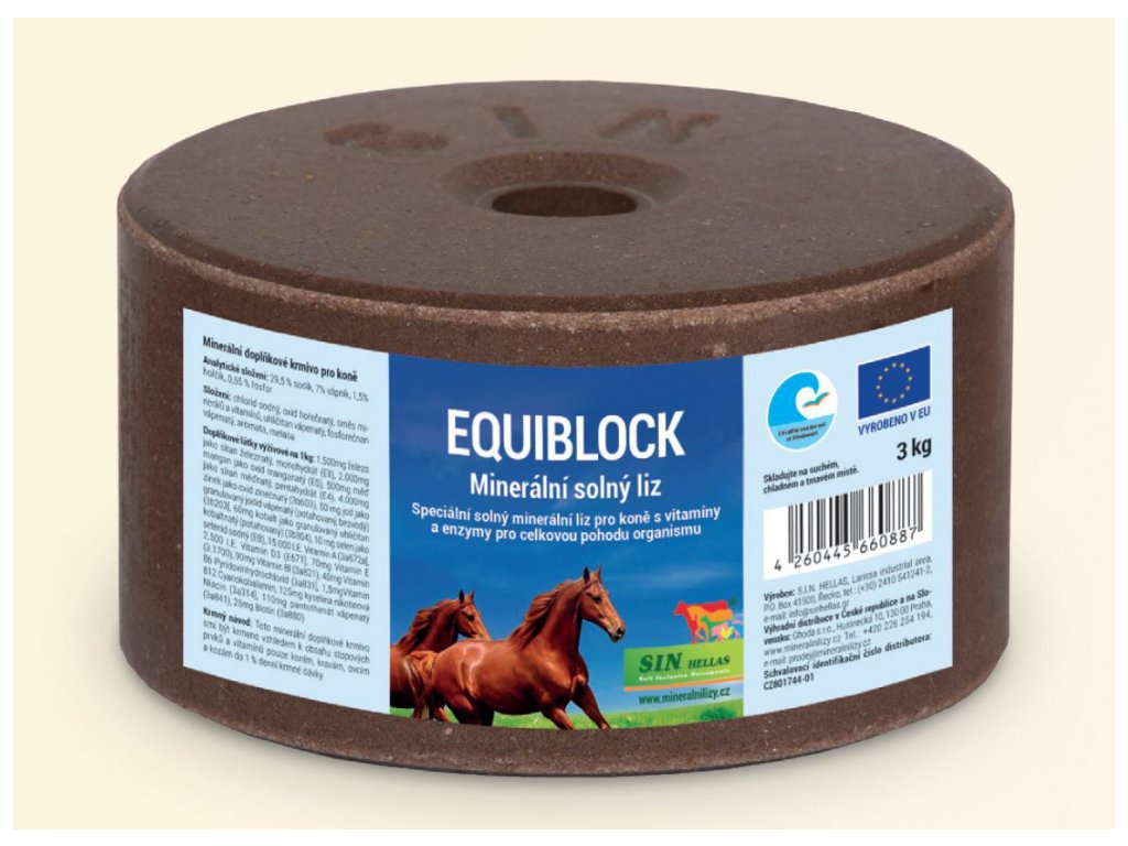 Equiblok je minerální liz určený speciálně pro koně. Unikátní  mix minerálních látek, stopových prvků, vitamínů a enzymů činí tento produkt vysoce hodnotným krmným doplňkem.
