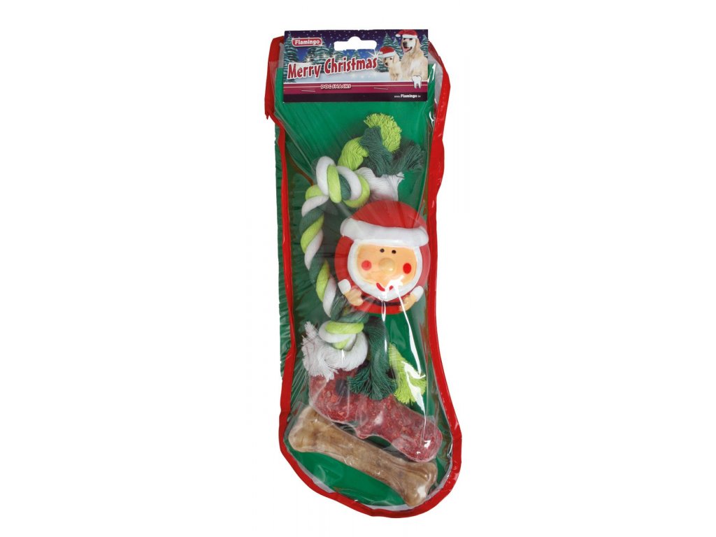Flamingo Vánoční ponožka pro psy - set hračky s pamlsky
