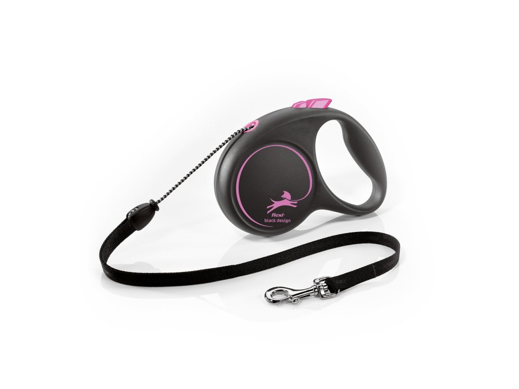 Flexi Vodítko Black Design M lanko 5m černo-růžové