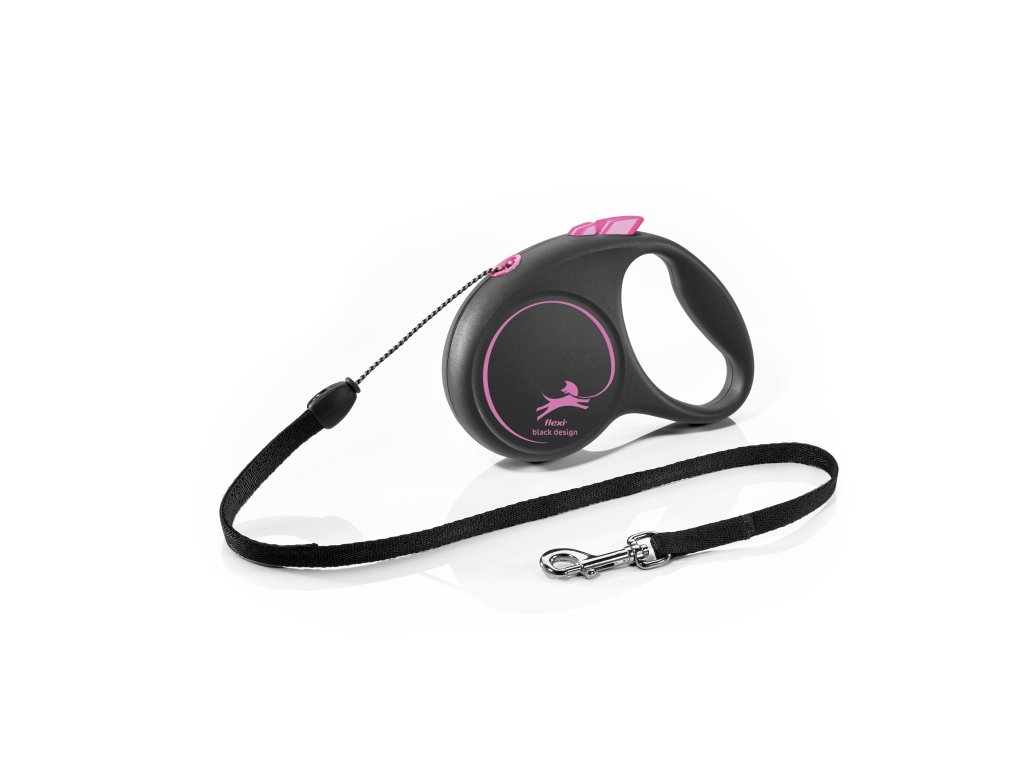 Flexi Vodítko Black Design S lanko 5m černo-růžové