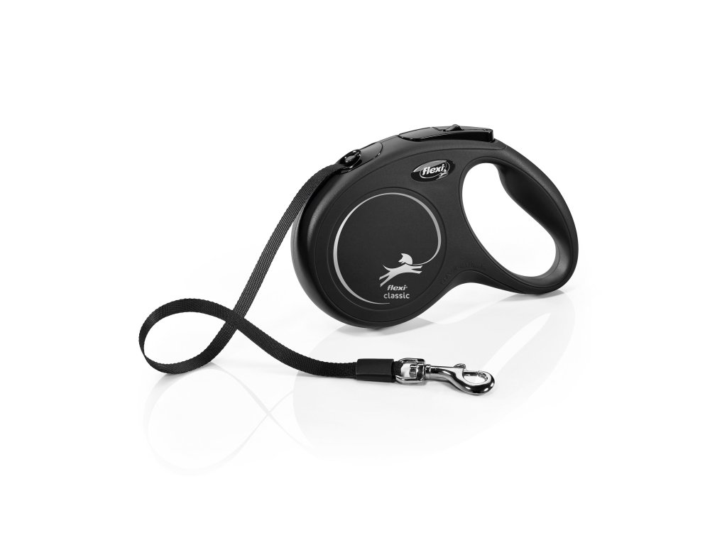 Vodítka flexi® Classic nabízí pohodlný úchop, odolný navíjecí systém i kvalitní, bezpečný a intuitivní brzdový systém, který ve zlomku vteřiny zastaví pohyb psa. Pro snadné upevnění vodítka k obojku nebo postroji je vodítko opatřeno chromovanou karabinou. Samozřejmostí je zdokonalený výstup pásku, který zajišťuje manipulaci v libovolném směru bez zasekávání - potvrzeno nesčetnými testy.
