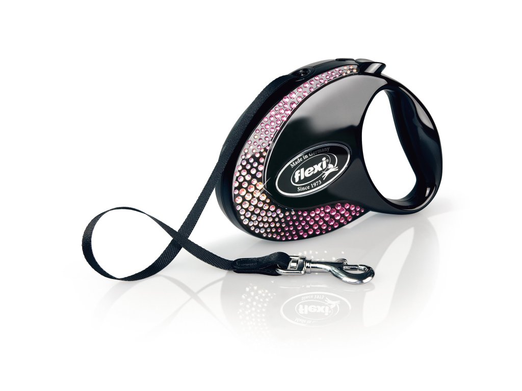S elegantním lesklým povrchem a zdobením vysoce kvalitními krystaly představuje flexi® Glam jedinečné vodítko s puncem luxusu. Kožené zakončení pásku dokonale kombinuje design a funkčnost. Vyberte si ten správný třpyt pro váš velkolepý vstup do psího parku!