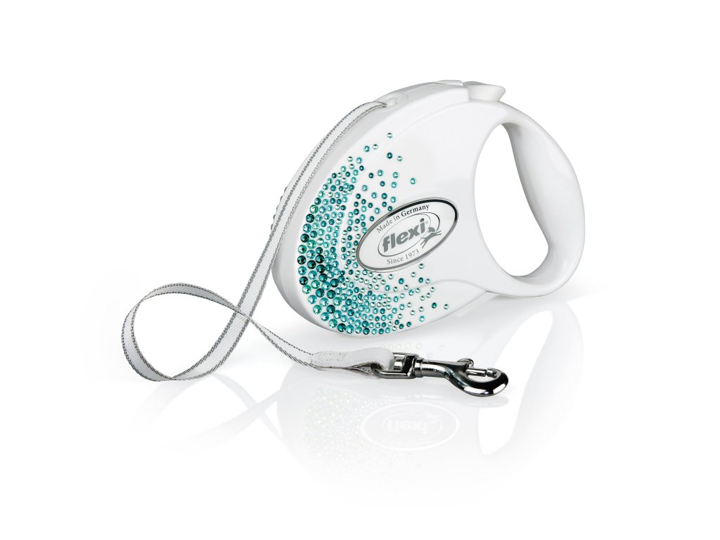 S elegantním lesklým povrchem a zdobením vysoce kvalitními krystaly představuje flexi® Glam jedinečné vodítko s puncem luxusu. Kožené zakončení pásku dokonale kombinuje design a funkčnost. Vyberte si ten správný třpyt pro váš velkolepý vstup do psího parku!