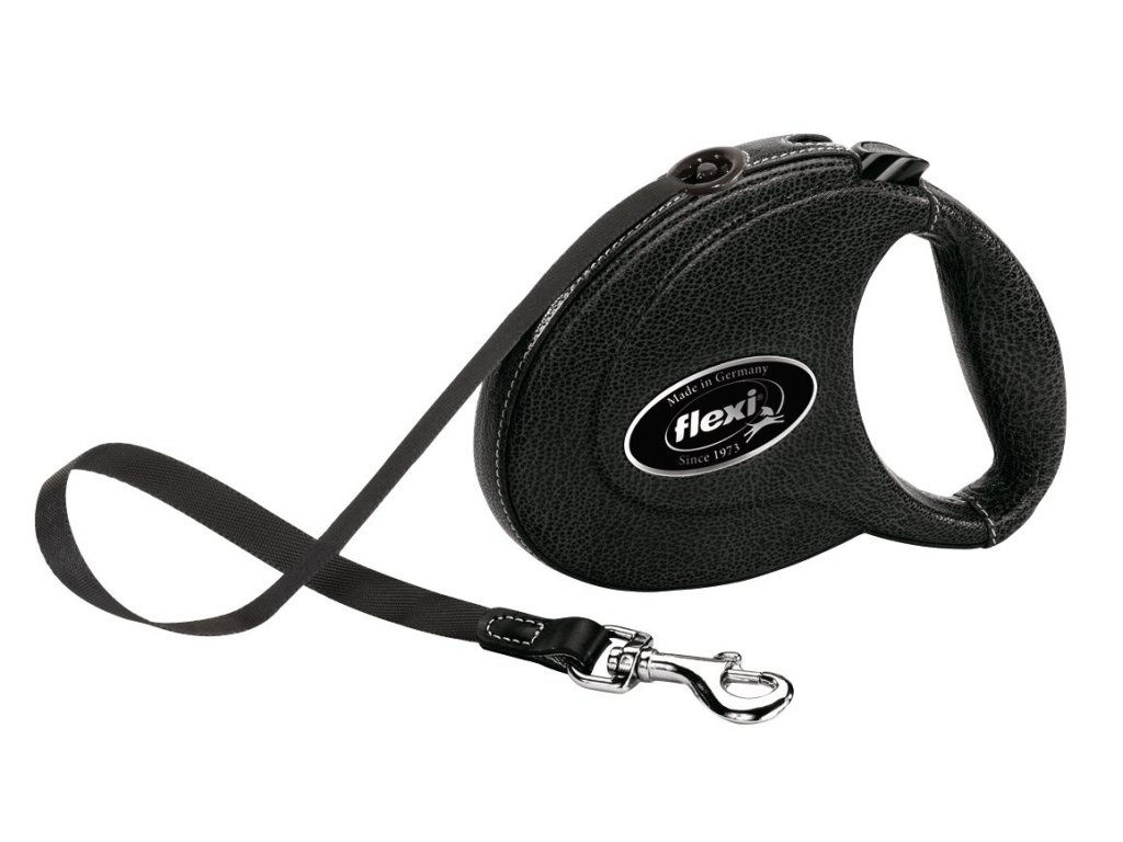 Flexi Vodítko Leather M pásek 5m černá kůže