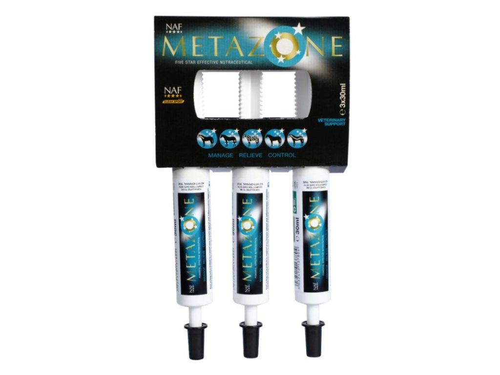 Jako perorální stříkačka je NAF Metazone ideální podporou při akutních potížích i během tréninku a závodů pro maximální pohodu. Neobsahuje žádné přísady zakázané FEI. Dá se však krmit i pravidelně denně. Pro dlouhodobější užívání doporučujeme NAF Metazone Liquid – účinný,  pětihvězdičkový,  protizánětlivý produkt  pro management koní vyžadujících speciální péči.