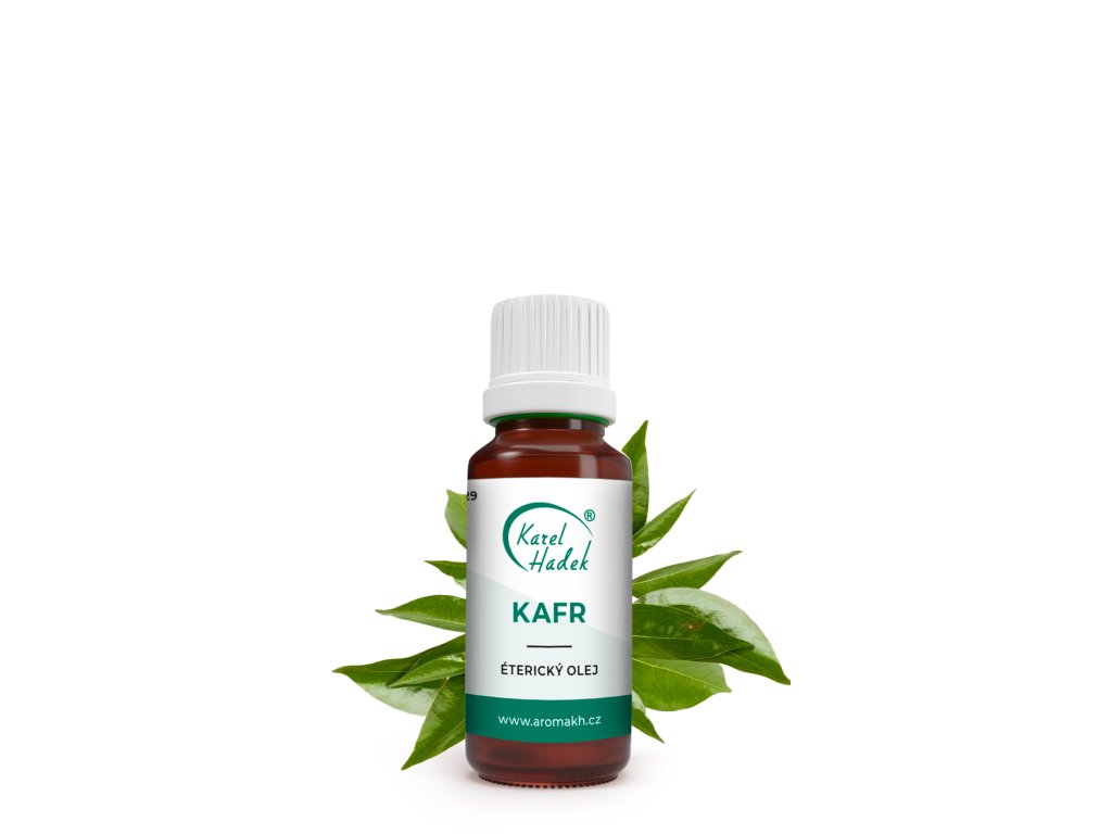 Stimulující krevní oběh při únavě a zimomřivosti. Kafr je získáván z dřeva kafrovníku, jedná se však i o složku éterických olejů z rozmarýnu nebo spajku. Svými účinky je podobný mentolu. Má duchovní úlohu v některých asijských náboženstvích. INCI: Cinnamomum camphora Wood Oil, Decamphorised VÝROBA: Destilace vodní parou ČÁST ROSTLINY: Dřevo ALERGENY: Camphor, Limonene, Pinenes, Alpha-Terpinene, Terpineol, Terpinolene VŮNĚ: Typická intenzivní kafrová vůně EXPIRACE: 24 měsíců CHEMISMUS: Kafr, alfa a beta-pinen, kamfen, safrol, fenchen, felandren, borneol, 1,8-cineol, eugenol CHARAKTERISTIKA: Světle žlutá kapalina. Posilující, prohřívací účinky. DUŠE: Stabilizuje organismus při velké slabosti, zlepšuje duševní stav. Při vnitřním chladu. Čistí od negativních emocí, zklidňuje vášnivé výbuchy. Rozptyluje smutek. TĚLO: Povzbuzující. Zvyšuje krevní tlak, posiluje činnost srdce a krevního oběhu. Při pocitu tísně na hrudi. VYUŽITÍ V KOSMETICE: Při ředění do cca 1 %. Vhodný jako součást přípravků určených pro mastnou a problematickou pleť (akné). Může mít prokrvující a deodorační účinky na pokožku. Přidává se do masážních olejů na uvolnění ztuhlého svalstva a kloubů, po námaze.Doplňkové parametry