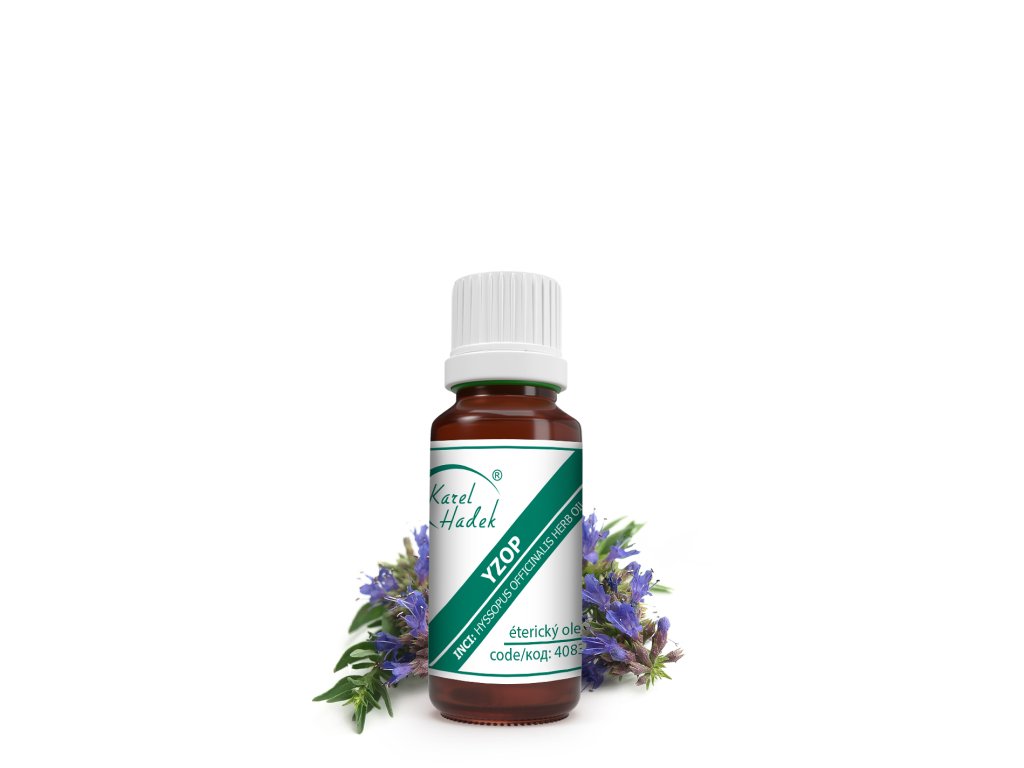 Pro uspořádání myšlenek. Yzop lékařský je hluchavkovitou rostlinou vyskytující se původně od oblasti Středomoří po Dálný východ. Zmínky o něm jsou dohledatelné už od starověku. Sušený je oblíbenou součástí směsí koření, zejména na Středním východě. INCI: Hyssopus officinalis Herb Oil VÝROBA: Destilace vodní parou ČÁST ROSTLINY: Bylina ALERGENY: Beta-Caryophyllene, Limonene, Linalool, Linalyl acetate, Pinenes, Alpha-Terpinene, Terpineol, Terpinolene VŮNĚ: Kořeněná, sladce trpká, kafrovitá, aromatická EXPIRACE: 24 měsíců CHEMISMUS: Pinokamfen, pinen, limonen, karyofylen, borneol, thujon, kamfen, pinokamfon CHARAKTERISTIKA: Žlutohnědá kapalina. Pomáhá vykašlávat při zahlenění, používá se při dýchacích potížích. Stimuluje při únavě a vyčerpání. DUŠE: Zlepšuje koncentraci, pomáhá uspořádat si myšlenky, posiluje schopnost praktického myšlení. Ochraňuje proti negativním emocím. Zklidňuje nervy při hysterii. Vhodný do meditačních směsí. TĚLO: Podporuje trávení. Usnadňuje vykašlávání a ulevuje při dýchavičnosti. Vyvolává pocení. Může pomoci vyrovnávat nepravidelnou menstruaci. VYUŽITÍ V KOSMETICE: Při maximální koncentraci 1 %. Naleznete jej v přípravcích pro mastnou, problematickou, zánětlivou pleť s akné, zejména ve formě mycích přípravků a speciálních krémů. Vyznačuje se adstringentní účinky, celkově tonizuje.Doplňkové parametry