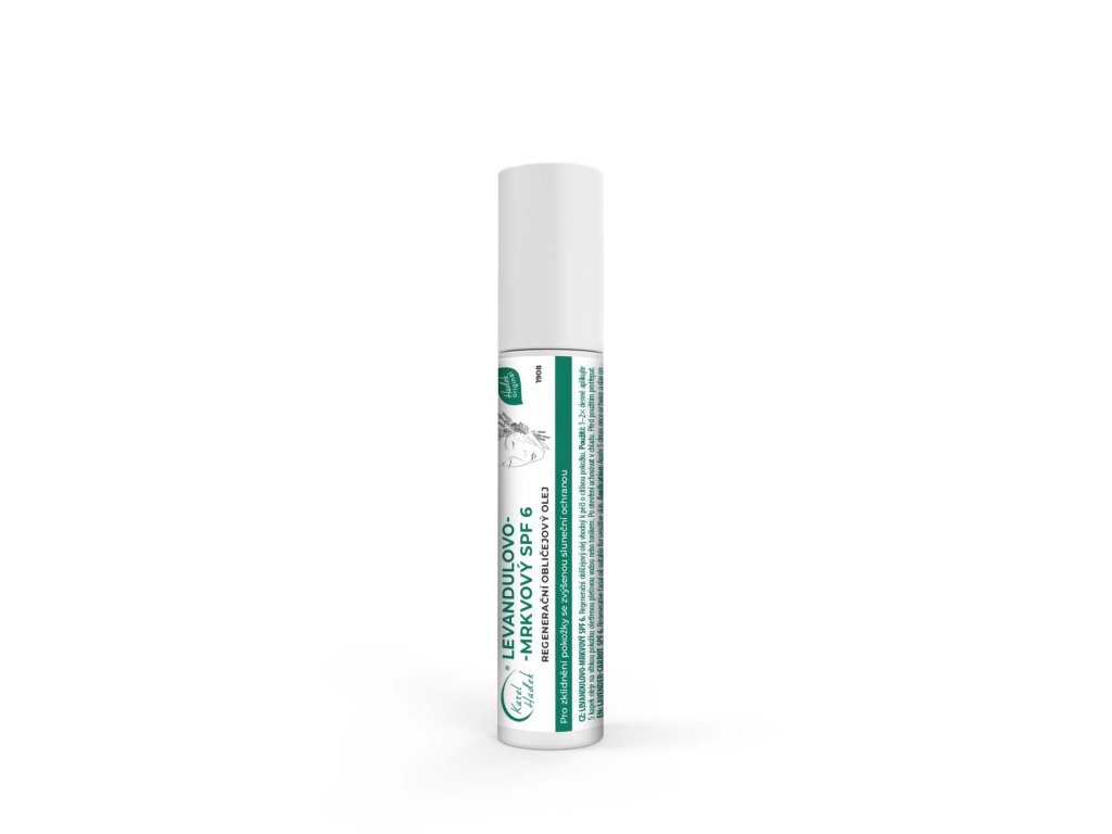 Regenerační obličejový olej s ochranným faktorem pro zklidnění citlivé a podrážděné pokožky. Uklidňující účinky a charakteristická vůně levandule, to je regenerační olej určený pro péči o velmi citlivou pokožku. Olej z mrkvových semen nejen synergicky zvyšuje účinky levandule, ale též může podpořit regeneraci pokožky, zpomalit tvorbu vrásek, rychleji hojit drobné ranky, které vznikají na ekzematické pokožce i při odličování citlivé pokožky. Přípravek díky použitým složkám - oleji z pšeničných klíčků, olejům ze sezamu, jojoby, olivy, brutnáku a pupalky může pomáhat aktivovat látkovou výměnu a udržovat pleť vláčnou a pružnou. Účinné složky mají antimikrobiální účinek, podporují symbiotickou mikrofloru pokožky. Regenerační olej vrací unavené pleti mladistvý vzhled a působí proti tvorbě vrásek. Komplexně chrání před škodlivými vlivy životního prostředí. Olej s ochranným faktorem 6 nabízí v letních měsících ochranu při pobytu na slunci, nenahrazuje však opalovací přípravek.Doplňkové parametry