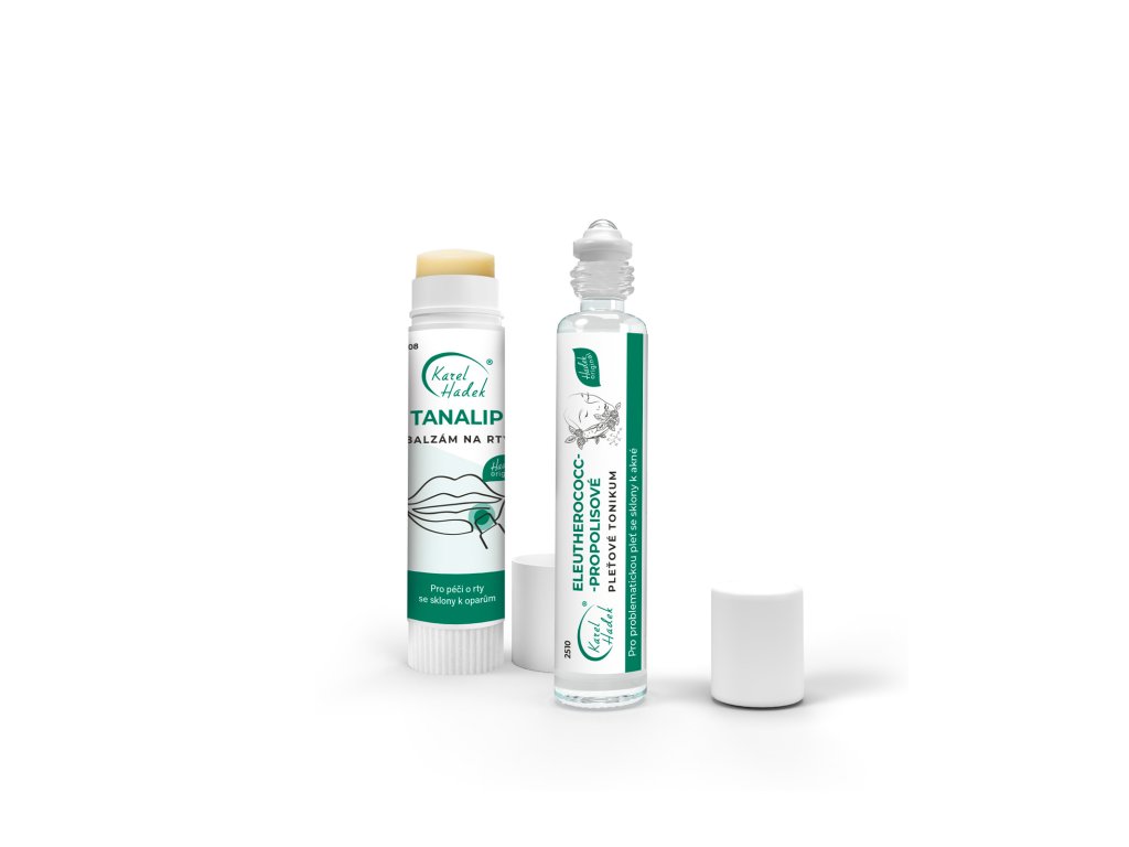 Komplexní péče o rty při výskytu oparu. V době oslabení organismu a při dlouhodobém stresu jsou rty náchylné ke tvorbě oparů. Důležitá je podpora obranyschopnosti organismu pomocí zvýšeného množství imunitu podporujících prostředků, ale zároveň také péče o pokožku rtů. Balzám TANALIP obsahuje složky ošetřující jemnou kůži rtů a udržuje ji vláčnou. Brání vzniku jemných prasklinek. Obsažené éterické oleje jsou známé svým antimikrobiálním působením, podporují přitom vhodnou mikroflóru. Pokud se na rtech projeví náznak tvorby oparu, použijte roll-on s ELEUTHEROCOCC-PROPOLISOVÝM TONIKEM a následně ošetřete balzámem. Sada obsahuje: 10 ml ELEUTHEROCOCC-PROPOLISOVÉ tonikum 6,5 ml balzám TANALIPDoplňkové parametry