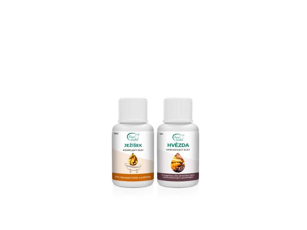 Uklidňující vánoční aroma pro koupel i sprchování. S naším koupelovým olejem JEŽÍŠEK a sprchovacím olejem HVĚZDA se doslova ponoříte do vánoční atmosféry a užijete si relaxační sprchu nebo koupel. Koupelový olej vás zklidní díky kompozici éterických olejů z kadidlovníku, cedru, vanilky, skořicové kůry, včelího vosku, badyánu, pomeranče, bazalky, hřebíčku a Litsey cubeby. Lehce prokrvující, prohřívající sprchovací olej s magickou vůní připomínající vánoční čas vás potěší díky teplé vůni pomeranče a koření doplněné borovicovým jehličím. Je vhodným pomocníkem nejen při únavě během vánočního období a zimních měsíců. Oceníte jej při pocitu vnitřního chladu, studených rukou a nohou. Díky obsahu borovicového a skořicového oleje je vhodný k použití při celulitidě, lymfatických potížích, otocích a sedavém zaměstnání. Mini sada v organzovém sáčku obsahuje: 20 ml Koupelový olej JEŽÍŠEK 20 ml Sprchovací olej HVĚZDADoplňkové parametry