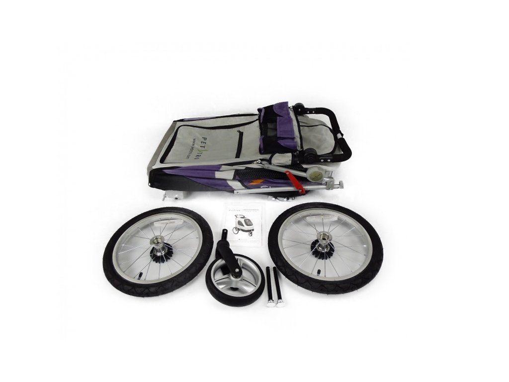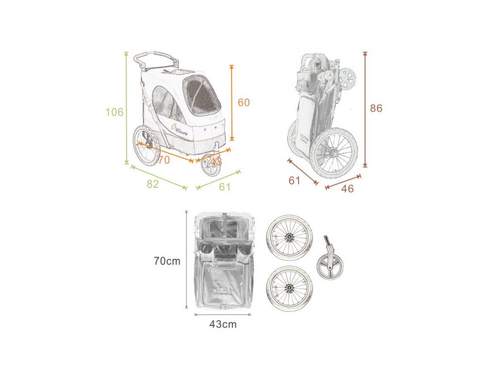 Pohodlný kočárek pro volný čas, výstavy a psy se sníženou pohyblivostí. Kočárek Petstro lze snadno přeměnit na vozík za kolo. (Nový model s krytem vrchní mřížky kabiny a připojením na konektor na kolo na levé straně, což je kompatibilní s většinou elektrokol) Výhody: • Vynikající pohyblivost díky přednímu kolu otočnému o 360° • Velká kola tlumí nárazy a umožňují hladkou jízdu na všech terénech • Odrazky na obou zadních kolech • Parkovací brzda • Výškově nastavitelná rukojeť • Odnímatelný držák nápojů • Lze rychle složit a snadno • Snadno se čistí - rám z ocelových trubek a odolná polyesterová/nylonová tkanina 600 Denier • Velký otvor na zadní straně pro snadné nastupování a vystupování • Bezpečnostní pásy uvnitř • Okna ve střeše, na bocích a vpředu umožňují dobrý výhled • Okna ve střeše a vpředu lze otevřít na zip • Dodatečný kryt na střešní okno chrání před větrem, sluncem a deštěm a dodává psovi pocit bezpečí • Připraveno pro dodatečnou montáž konektoru na kolo na levé straně • konektor na kolo, pláštěnku nebo upravovací stolek lze zakoupit samostatně (není součástí balení) Technické specifikace: Max. Nosnost: 30 kg Velikost ve složeném stavu: cca. 86 x 61 x 46 cm Velikost v rozloženém stavu: cca. 82 x 61 x 106 cm Vnitřní rozměr: cca. 70 x 43 x 60 cm Hmotnost: 13 kgMax. tlak v nafukovacích kolech 2,5 bar.Diskuze