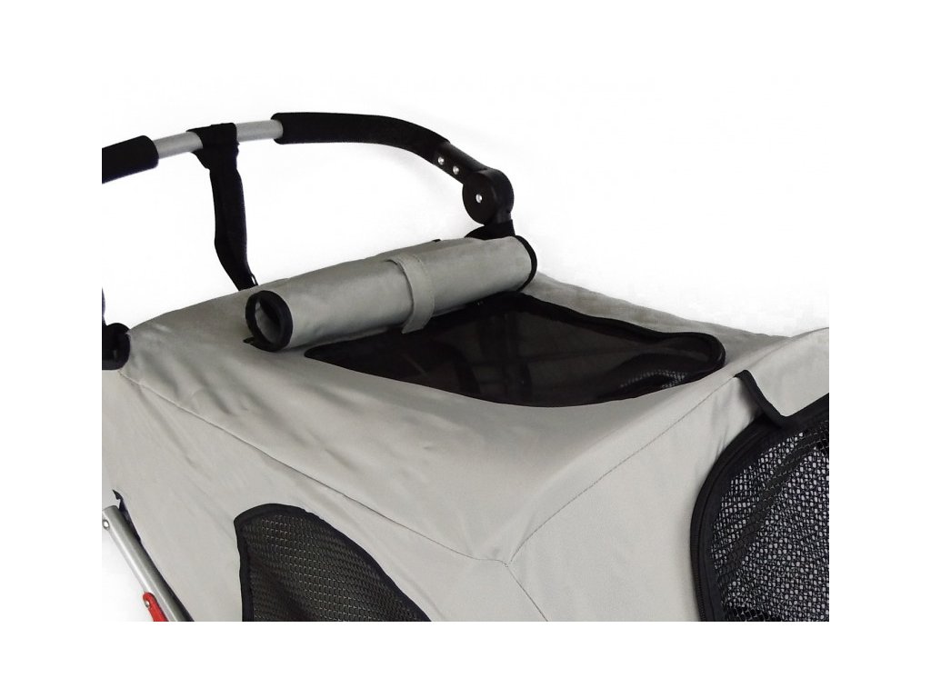 Pohodlný kočárek pro volný čas, výstavy a psy se sníženou pohyblivostí. Kočárek Petstro lze snadno přeměnit na vozík za kolo. (Nový model s krytem vrchní mřížky kabiny a připojením na konektor na kolo na levé straně, což je kompatibilní s většinou elektrokol) Výhody: • Vynikající pohyblivost díky přednímu kolu otočnému o 360° • Velká kola tlumí nárazy a umožňují hladkou jízdu na všech terénech • Odrazky na obou zadních kolech • Parkovací brzda • Výškově nastavitelná rukojeť • Odnímatelný držák nápojů • Lze rychle složit a snadno • Snadno se čistí - rám z ocelových trubek a odolná polyesterová/nylonová tkanina 600 Denier • Velký otvor na zadní straně pro snadné nastupování a vystupování • Bezpečnostní pásy uvnitř • Okna ve střeše, na bocích a vpředu umožňují dobrý výhled • Okna ve střeše a vpředu lze otevřít na zip • Dodatečný kryt na střešní okno chrání před větrem, sluncem a deštěm a dodává psovi pocit bezpečí • Připraveno pro dodatečnou montáž konektoru na kolo na levé straně • konektor na kolo, pláštěnku nebo upravovací stolek lze zakoupit samostatně (není součástí balení) Technické specifikace: Max. Nosnost: 30 kg Velikost ve složeném stavu: cca. 86 x 61 x 46 cm Velikost v rozloženém stavu: cca. 82 x 61 x 106 cm Vnitřní rozměr: cca. 70 x 43 x 60 cm Hmotnost: 13 kgMax. tlak v nafukovacích kolech 2,5 bar.Doplňkové parametry
