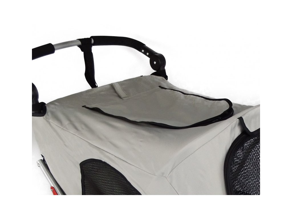 Multifunkční kočárek pro psy do 55 kg s možností připevnění upravovacího stolku (není součástí balení), s prostornou kabinou o rozměrech cca 85 × 55 × 60 cm a s bočnicemi se síťovanými okénky, které zabezpečují dostatek přísunu čerstvého vzduchu. Na vrchní a přední straně naleznete další síťovaná okénka, které lze i otevřít. Na zadní straně lze otevřít velký vstup. Vozík je ideální na výstavy psů, protože tento kočárek nahradí vozík na věci, kennelku a u většiny plemen i výstavní stůl (není součástí balení). Díky průměru kol 38 cm pohodlně projedete i obtížnějším terénem. Kočárek lze také použít pro přepravu psů a jiných zvířecích mazlíčků jako vozík za kolo s použitím propojovací tyče (není součástí balení). Pokud by náhodou začalo pršet, jistě oceníte další volitelné příslušenství a tím je přesně padnoucí pláštěnka (není součástí). Na kočárku jsou vám k dispozici 3 malé a 1 velká kapsa. Velice snadno se skládá. Zadní kola mají brzdový systém a jsou lehce odnímatelná po zmáčknutí tlačítka ve středu kola. Technické informace: vnější rozměry: cca 112 x 105 x 70 cm. Rozměry kabiny: cca 85 × 55 × 60 cm. Výška držadla: 80 - 110 cm. Rozměry ve složeném stavu: cca 98 x 46 x 70 cm. Rozměry ve složeném stavu bez kol: cca 98 x 15 x 70 cm. Maximální nosnost: 55 kg. Hmotnost kočárku: 14.9 kg. STOLEK, PLÁŠTĚNKA A PROPOJOVACÍ TYČ NA KOLO NENÍ SOUČÁSTÍ BALENÍ. LZE OBJEDNAT SAMOSTATNĚ. (Nový model s krytem vrchní mřížky kabiny a připojením na konektor na kolo na levé straně, což je kompatibilní s většinou elektrokol)Max. tlak v nafukovacích kolech 2,5 bar.Doplňkové parametry