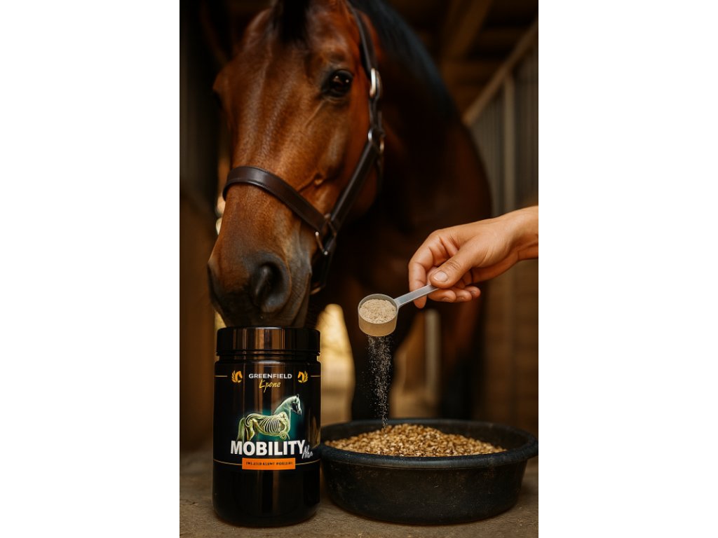 Arthri Mobility Max je špičkový doplněk výživy vyvinutý pro maximální péči o pohybový aparát koní. Obsahuje jedinečnou kombinaci účinných látek – glukosamin, chondroitin sulfát, kyselinu hyaluronovou, MSM a vitamín C – které společně vytvářejí silný ochranný a regenerační efekt pro klouby, chrupavky a pojivové tkáně.