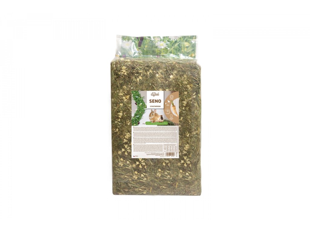 Složení: Seno z luk 98 % (může obsahovat bojínek luční, ovsík vyvýšený, medyněk vlnatý, kostřavu červenou, lipnici obecnou, kostřavu luční, srhu říznačku, psárku obecnou, jetel plazivý, jetel luční, krvavec toten, kopretinu bílou, jitrocel kopinatý, druhy zvonků a další luční byliny), pastinák 2 %.
