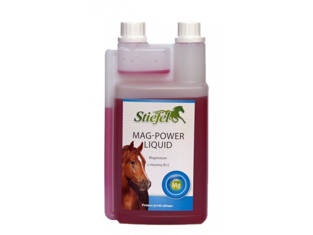 Stiefel Mag Power liquid s hořčíkem, tryptofanem, vitamínem B12 a zinkem, účinný proti stresu. Magnesium a vitamín B12 působí pozitivně na stresované a nervózní koně.