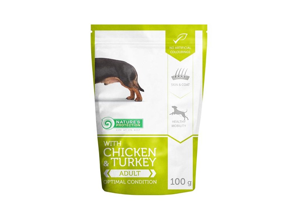Kapsička Nature's Protection for Adult Mini with Chicken & Turkey - s  kuřecím a krůtím masem je kompletní krmivo určené pro dospělé psy malých plemen.