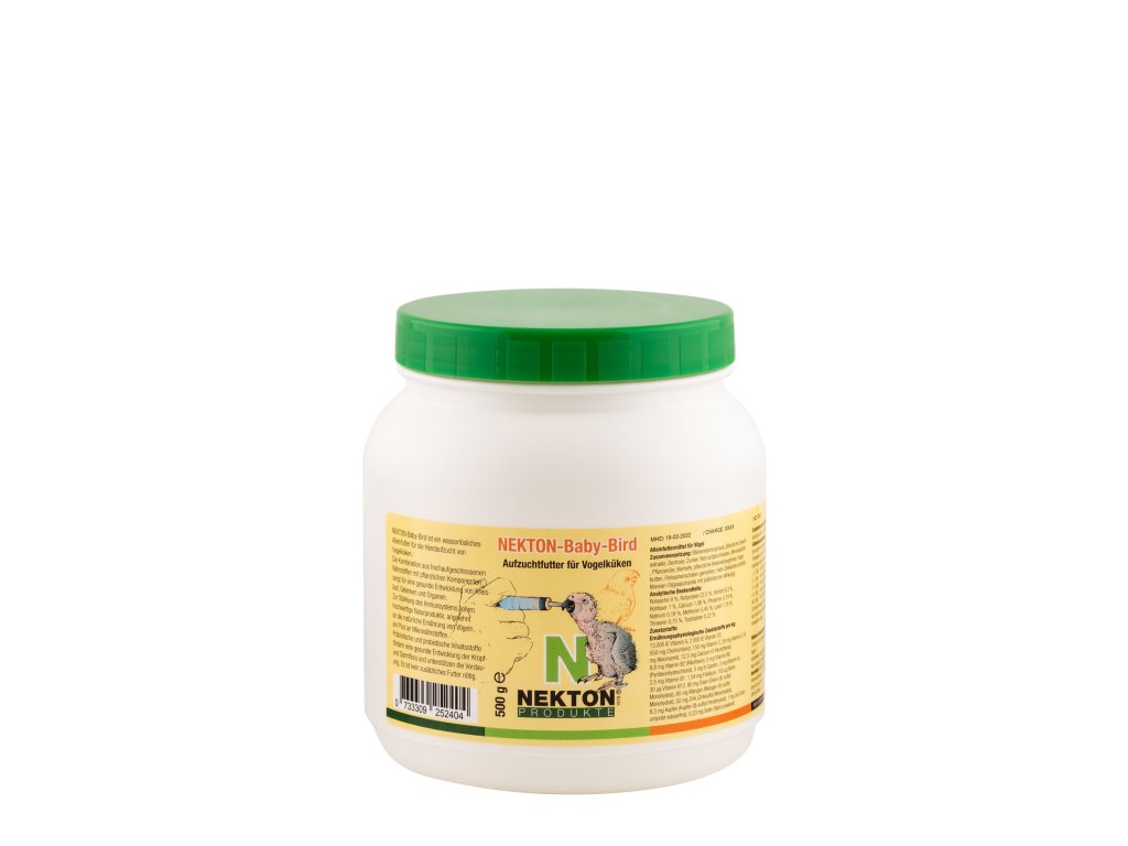 NEKTON-Baby-Bird je ve vodě rozpustné kompletní krmivo pro ruční odchov mláďat ptáků. Kombinace lehce stravitelných nutrientů s rostlinnými složkami zajišťuje zdravý vývoj oběhového systému, kloubů a orgánů. Pro posílení imunitního systému byly použity pouze vysoce kvalitní přírodní ingredience s přídavkem mikronutrientů, podobné přirozené potravě. Prebiotika a probiotika zajišťují zdravý růst mikroflóry ve voleti a střevech a podporují trávení. Není potřeba nabízet žádné jiné krmivo.