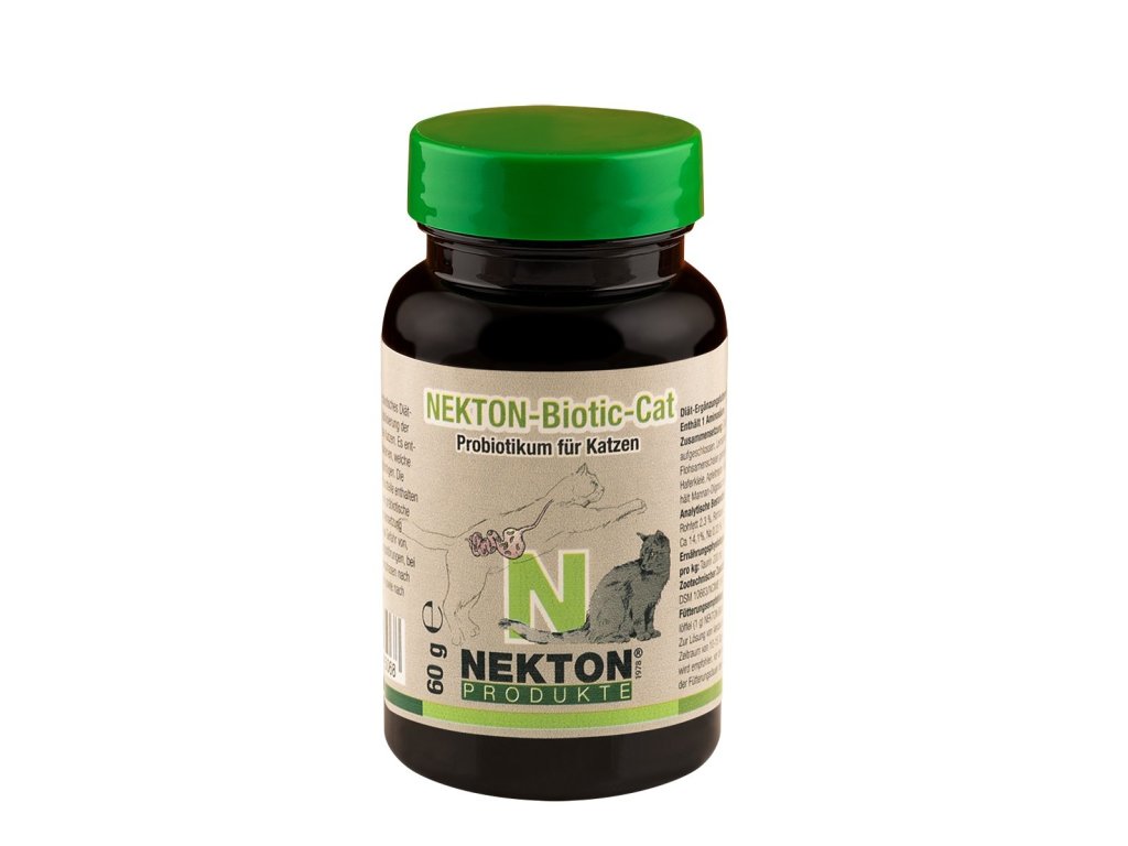 NEKTON Biotic Cat pomáhá stabilizovat střevní mikroflóru a využívá čistě přírodní účinné látky. NEKTON Biotic Cat obsahuje zvláště vysoký počet bakterií Enterococcus faecium. Tyto probiotické bakterie zlepšují konzistenci trusu a regulují hodnotu pH ve střevech, takže vzniká optimální prostředí pro zdraví prospěšnou střevní flóru. Na druhé straně patogenní (choroby způsobující) zárodky (např. salmonely a klostridie) jsou eliminovány.