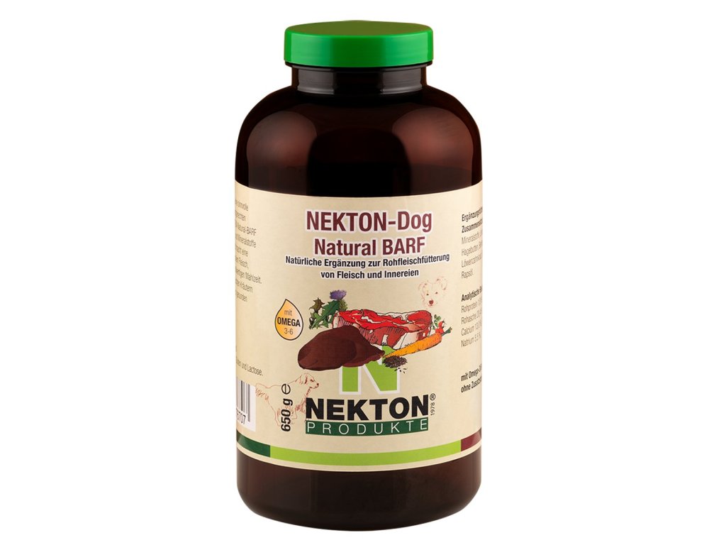 NEKTON-Dog Natural BARF je citlivě sestavený doplněk stravy psů pro biologicky přirozené krmení čerstvou, či syrovou potravou (BARF). Veškeré obsažené vitamíny a minerály jsou pouze z přírodních zdrojů. NEKTON-Dog Natural BARF je ideální pro doplnění krmné dávky z čerstvého masa, vnitřností a olejů.