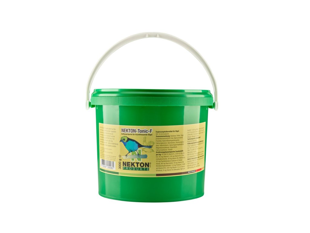 Různorodost a kombinace více než 60 výživových substancí činí z preparátu NEKTON Tonic F nepostradatelného pomocníka chovatelů ptáků. Množství a poměr jednotlivých složek je pečlivě kombinováno tak, aby vyhovovalo plodožravým ptákům, protože i nutriční požadavky v přírodě se liší podle skladby potravy a potravní specializace. Perfektní potravní doplněk pro dospělé jedince i mláďata.