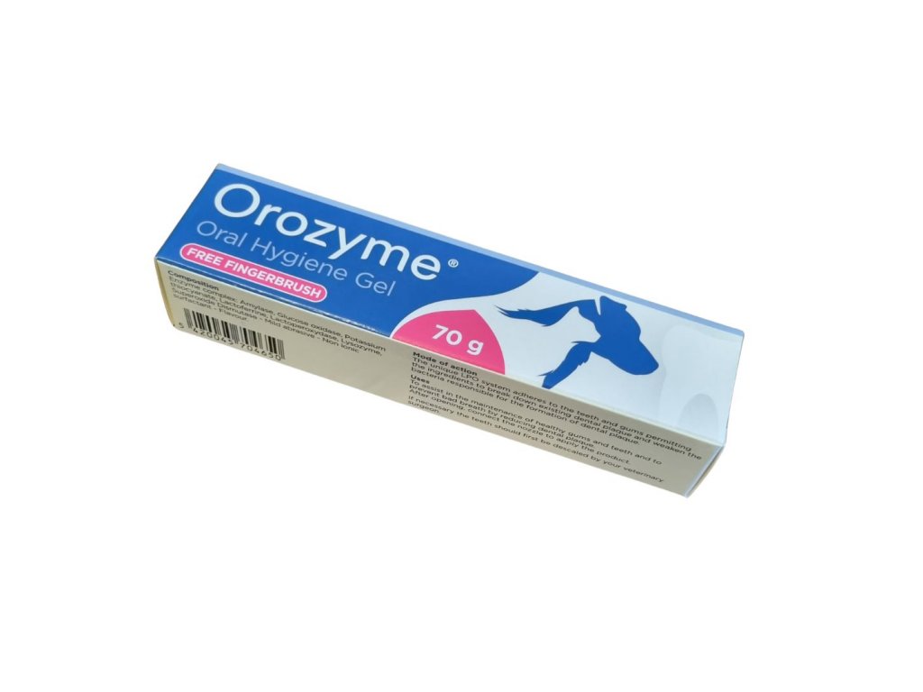 Doporučené použití: Používejte jednou denně (s kartáčkem nebo bez kartáčku) . Dávkování: Psi: Přidávejte přímo do dutiny ústní nebo smíchejte s malým množstvím krmiva. Malí psi a kočky 1 cm gelu Psi do 20 kg 2 cm gelu Psi nad 20 kg 5 cm gelu Pokud je to nezbytné, nejprve by veterinář měl odstranit zubní kámen. Udržuje zdravé dásně a zuby. Působí proti nepříjemnému zápachu z dutiny ústní. Kočky: Aplikujte přímo do úst nebo na přední tlapky, kde kočky Orozyme olízají. S tubou se dodává i aplikační nástavec, který usnadňuje aplikaci u koček a malých zvířat. Složení: kolagen, slad, přírodní zchutňující a aromatické substance a jejich extrakty. Obsahuje: amylázu, glukoamylázu, glukoso-oxidázu, thiokyanát draselný, laktoferin laktoperoxidázu, lyzozym, superoxid-dismutázu,.mírná abraziva, surfaktanty, zchutňující substance Balení: Tuby o obsahu 70g. Pro psa o hmotnosti 20 kg vystačí na dobu 6-8 týdnůDoplňkové parametry