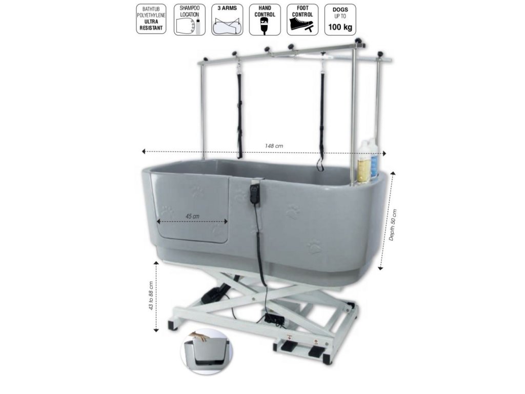 Plastová vana s elektrickým zdvihem a dvířky 148 x 80cm MODRÁ