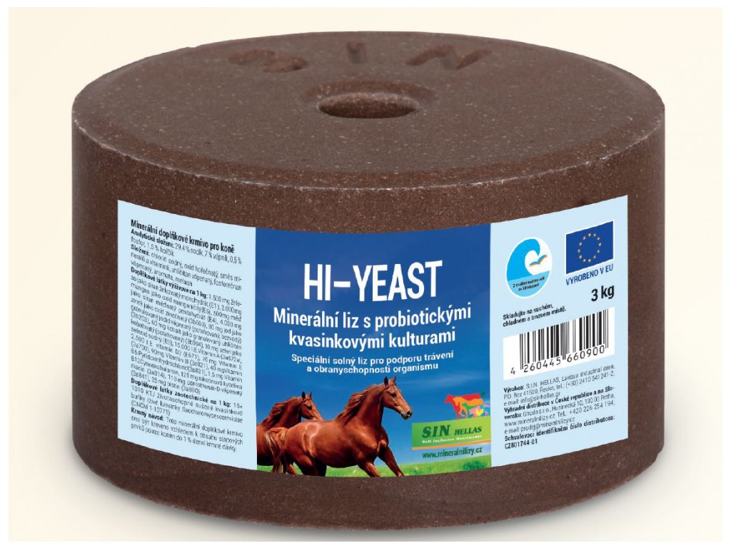 Minerální probiotický liz s  živými kvasinkami Levucell®, o nichž je známo, že působí pozitivně na trávící a obranný systém v  organismu.