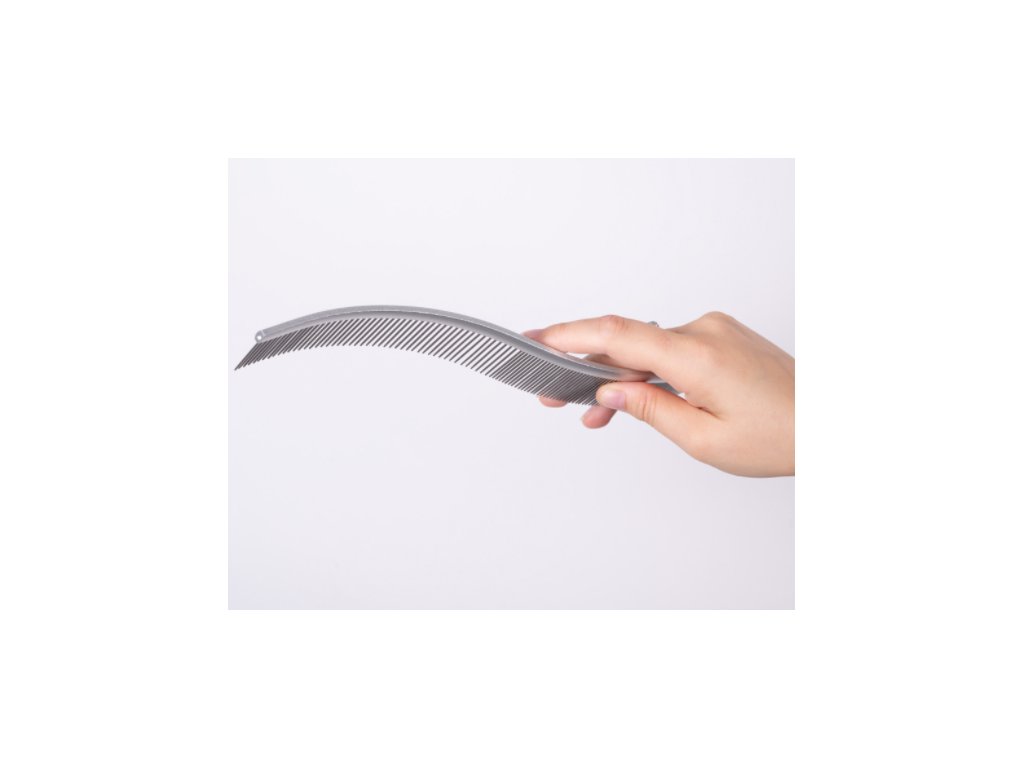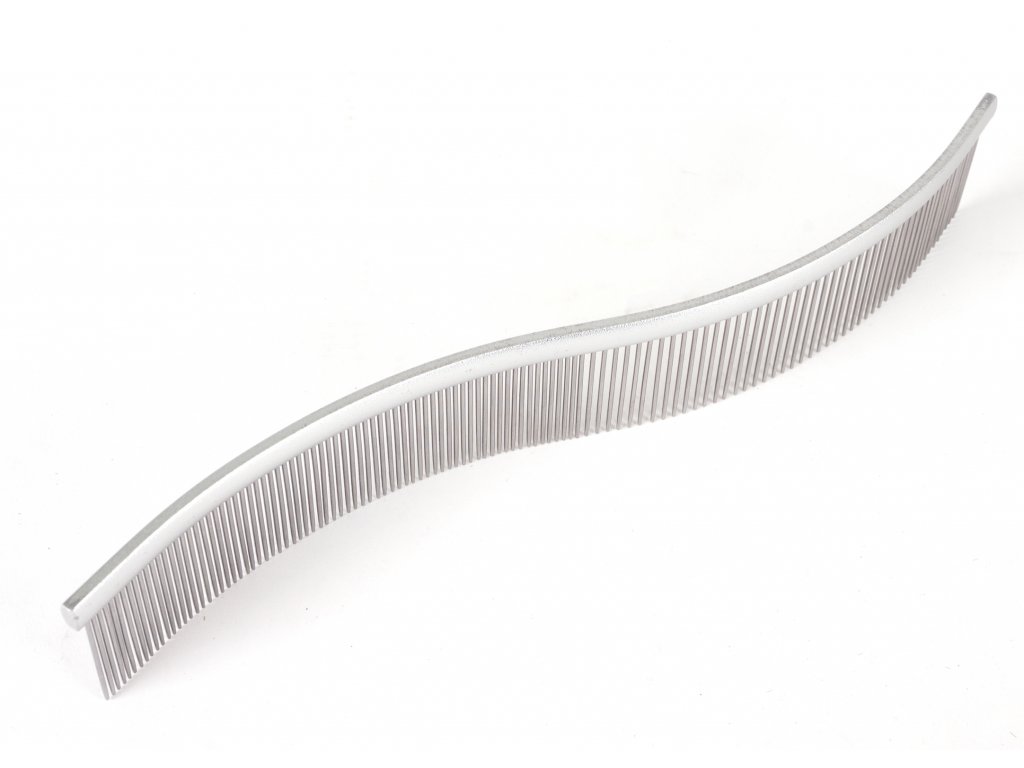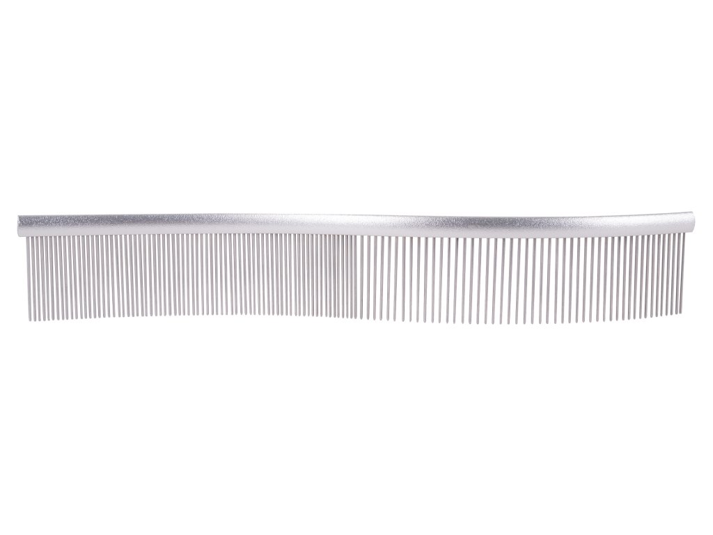 Profesionální kombinovaný hřeben SWIRL Show Tech Featherlight 25 cm. Díky zakřiveným hřbetům a ultralehké hliníkové rukojeti vám jeho dlouhé hroty umožňují vyčesat ty nejtěžší dostupné partie a zvýrazní přirozené křivky psa. Parametry hřebenu: hmotnost: 52 g, celková délka: 25,5 cm, délka zubů: 3,2 cm, větší rozestupy zubů v jedné polovině: 2 mm a ve druhé polovině hřebenu menší rozestupy zubů 1 mm, počet zubů: 120. * Všechny údaje jsou přibližné.Doplňkové parametry
