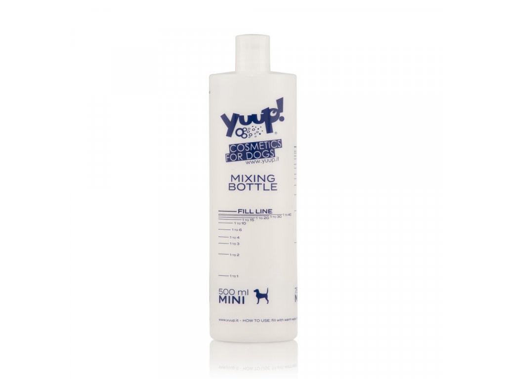 Ředící láhev YUUP, vyrobená z plastu. Pro snadné odměření požadované dávky přípravku, dle velikosti psa. Odměrky jsou značené na MINI-500ml, MIDI-750ml, MAXI-1000ml.Doplňkové parametry