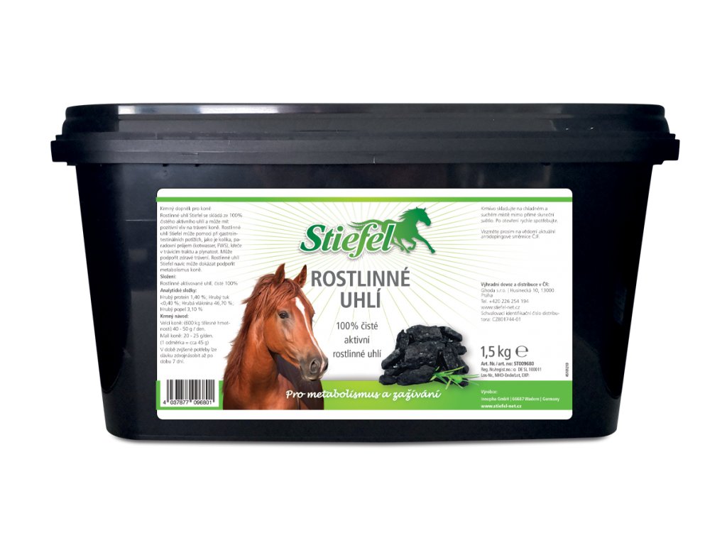 Krmný dopněk pro koně Rostlinné uhlí Stiefel se skládá ze 100% čistého aktivního uhlí a může mít pozitivní vliv na trávení koní. Rostlinné uhlí Stiefel může pomoci při gastrointestinálních potížích, jako je kolika, paradoxní průjem (kotwasser, FWS), křeče v trávicím traktu a plynatost. Může podpořit zdravé trávení. Rostlinné uhlí Stiefel navíc může dokázat podpořit metabolismus koně.
