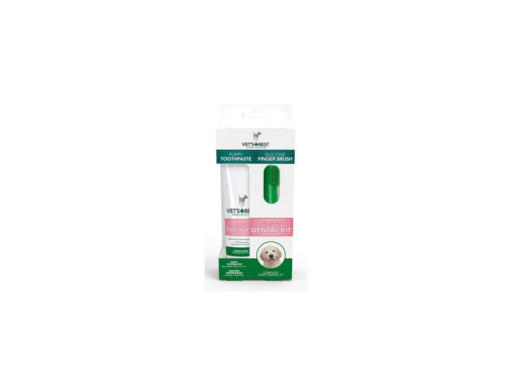 Sada na čištění zubů pro štěňata, VET'S BEST poskytuje nejlepší zubní péči pro vašeho domácího mazlíčka. Zubní pasta pro štěňata Vet´s Best je chutná pasta, která začne pracovat okamžitě, aby mohla předejít plaku a zubnímu kameni dříve než se začne tvořit. Je to jemná směs ingrediencí připravených tak, aby splňovaly potřeby štěňátek. Zubní pasta pro štěňata Vet´s Best také obsahuje přírodní směs máty peprné, hřebíčku, heřmánku a levandulového oleje na zklidnění podrážděných dásní při prořezávání zubů a pomáhá snižovat destruktivní žvýkání v tomto období. Součástí balení je také silikonový náprstek, který pohodlně čistí kolem každého zubu, což umožní efektivní čištění chrupu z každého úhlu. Již více než 30 let Vets Best připravuje přírodní ingredience, které společně pomáhají k většímu pohodlí a ochraně vašeho domácího mazlíčka.Doplňkové parametry