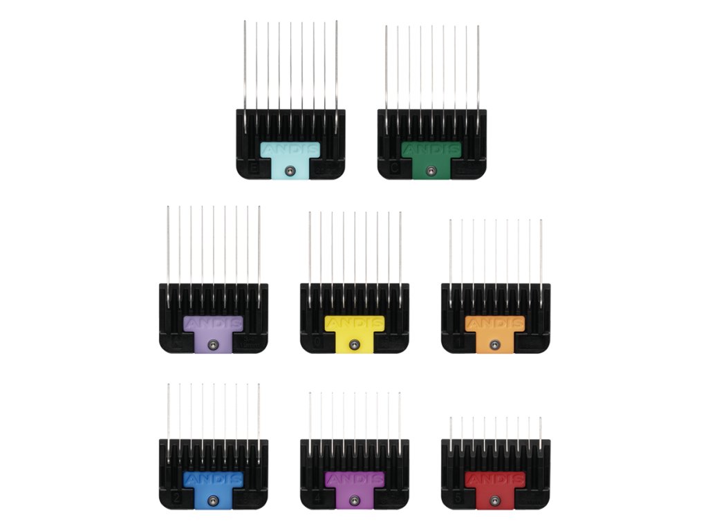 Vaše nástroje by měly vaši kreativitu podporovat, ne omezovat. Podpořte svou vášeň naplno s touto univerzální sadou hřebenových nástavců z nerezové oceli – odolnými a všestrannými nástroji. Každé zvíře je jiné. Hustota srsti, struktura kostí a temperament se liší u každého chlupáče. Vaše kreativní nástroje musí být připraveny se přizpůsobit. Pomozte svým klientům vyjádřit jejich nejlepší rysy s touto luxusní sadou univerzálních nástavců. Dosáhněte svěžích prolínání a úprav s ultraodolnou nerezovou ocelí, která prořezává srst hladčeji než plastové nástavce. Vhodné pro břity Andis #10 a #30 UltraEdge a CeramicEdge a všestranná řada velikostí vám umožní posouvat vaše kreativní limity. Jasné a zářivé barvy hřebenů vám pomohou udržet si pořádek a rychle najít toho pravého pro sebe a zároveň zvládnout cokoli, co přijde do salonu. Univerzální nástavce z nerezové oceli: prokazují šmrnc pro každý střih.Doplňkové parametry