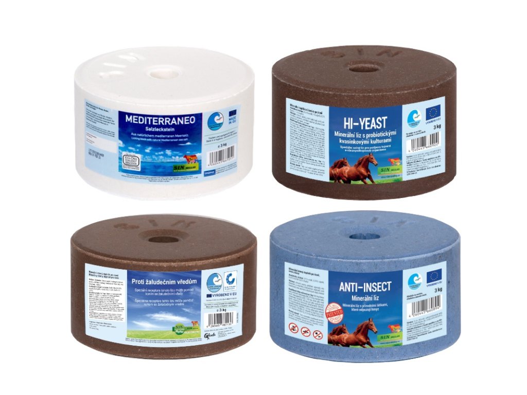 Cenově zvýhodněné balení 4 bylinných minerálních lizů, které ocení každý kůň.