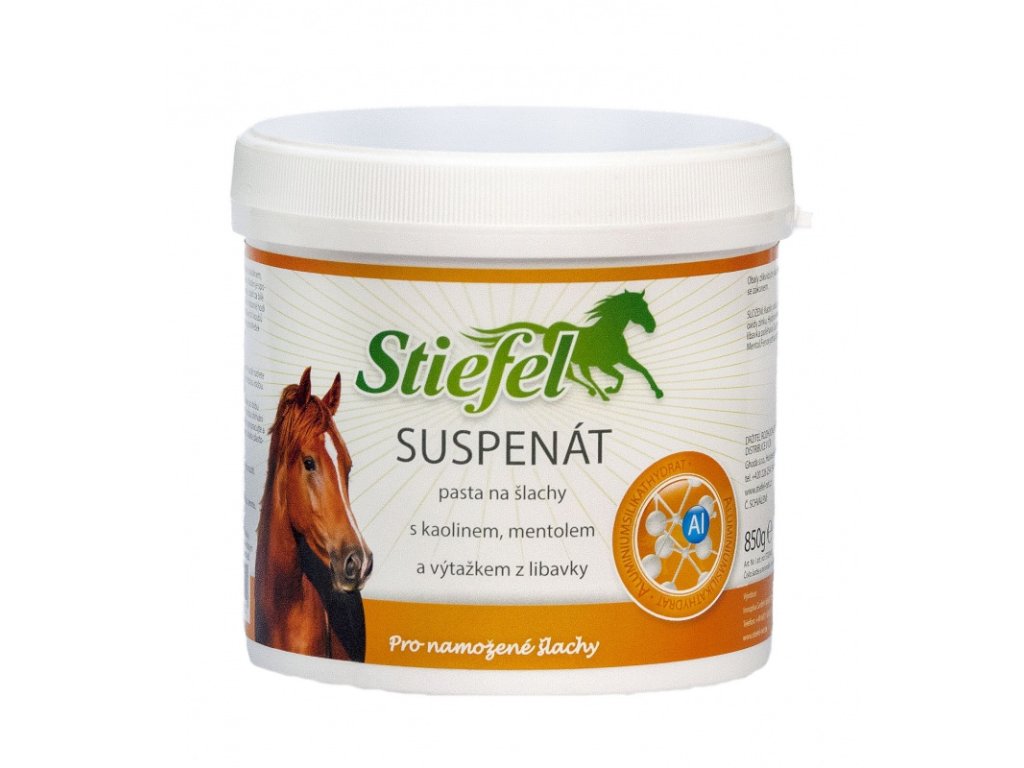 Stiefel Suspenát pasta na šlachy  s  kaolinem, mentolem a výtažkem z  libavky. Kaolin je spojení z  aluminium silikátu a vody a platí za bílé zdraví země. Stiefel Suspenát se výborně hodí k  chlazení zatížených nebo bolavých kloubů a šlach.
