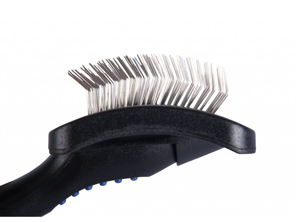 Jedinečné zpracování obsahuje jak dlouhé, tak i krátké tvrdší drátky pro rozčesání obzvláště zacuchané srsti. Použití: dlouhá srst - jemně kartáčujte dlouhými tahy po směru růstu srsti. Pro lepší výsledky si srst rozdělte po vrstvách a začněte odspodu. Kudrnatá srst - jemně kartáčujte dlouhými tahy po směru srsti a následně proti. Věnujte zvýšenou pozornost, kde se srst nejvíce zacuchává, jako jsou místa za ušima, podpaží a bedra. Pro lepší výsledky si srst rozdělte po vrstvách a začněte odspodu. Na závěr pro kontrolu správného rozčesání srsti použijte jednořadý hřeben. Kartáčujte pomalu, abyste zabránili hromadění statické elektřiny. Abyste zabránili zacuchání srsti měla by se srst pravidelně koupat v šamponu a kondicionéru a denně kartáčovat. Rozměry jednotlivých velikostí: velikost S: hmotnost: 52 g, celková délka: 14,5 cm, velikost pracovní části: 6,5 x 4 cm, délka rukojeti: 10 cm, délka delších drátků: 1,4 cm, podložka: tvrdá. Velikost M: hmotnost: 70 g, celková délka: 15,5 cm, velikost pracovní části: 9 x 5 cm, délka rukojeti: 10 cm, délka delších drátků: 1,4 cm, podložka: tvrdá. Velikost L: hmotnost: 98 g, celková délka: 19 cm, velikost pracovní části: 10 x 7 cm, délka rukojeti: 11 cm, délka delších drátků: 1,4 cm, podložka: tvrdá. *Všechny údaje jsou přibližné.Doplňkové parametry