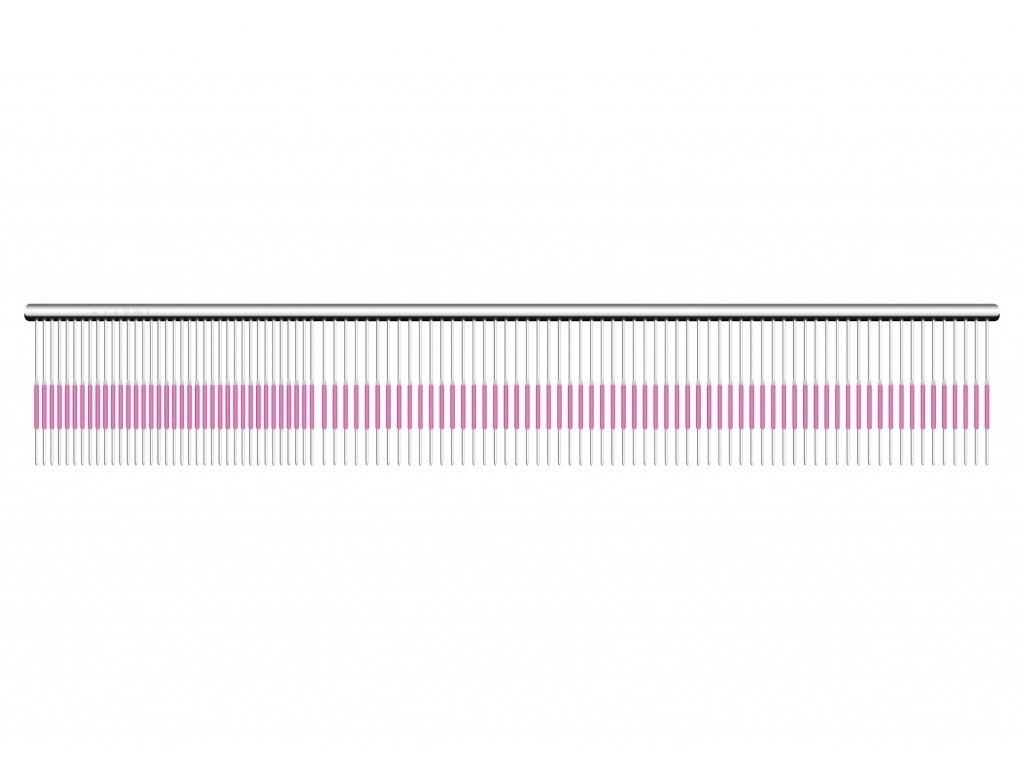 Slavná řada hřebenů Utsumi, navržená tak, aby byla primárně používána pro konečnou úpravu. Hřeben je lehký, nezatěžuje zápěstí při česání mazlíčka. Tento hřeben mohou používat jak profesionální chovatelé, tak majitelé domácích mazlíčků, kterým záleží na jejich srsti.Použití: Na konečnou úpravu srsti. S tímto hřebenem nelze rozčesávat - srst musí být vykoupaná a rozčesaná! Výborný pro použití na štěněčí a jemnou srst. Růžová část hřebenu má speciálně upravý povrch, pro práci s jemnou srstí, která po načesání drží svůj tvar. Velmi tak usnadňuje práci při střihu. Parametry: hmotnost 45 g, celková délka 22,7 cm, velikost pracovní části 22,2 cm, rozestupy zubů 2 mm v pracovní části o délce 16 cm, rozestupy zubů 1 mm v pracovní části o délce 6 cm, počet zubů 100, délka zubů 3,5 cm. * Všechny údaje jsou přibližné.Doplňkové parametry