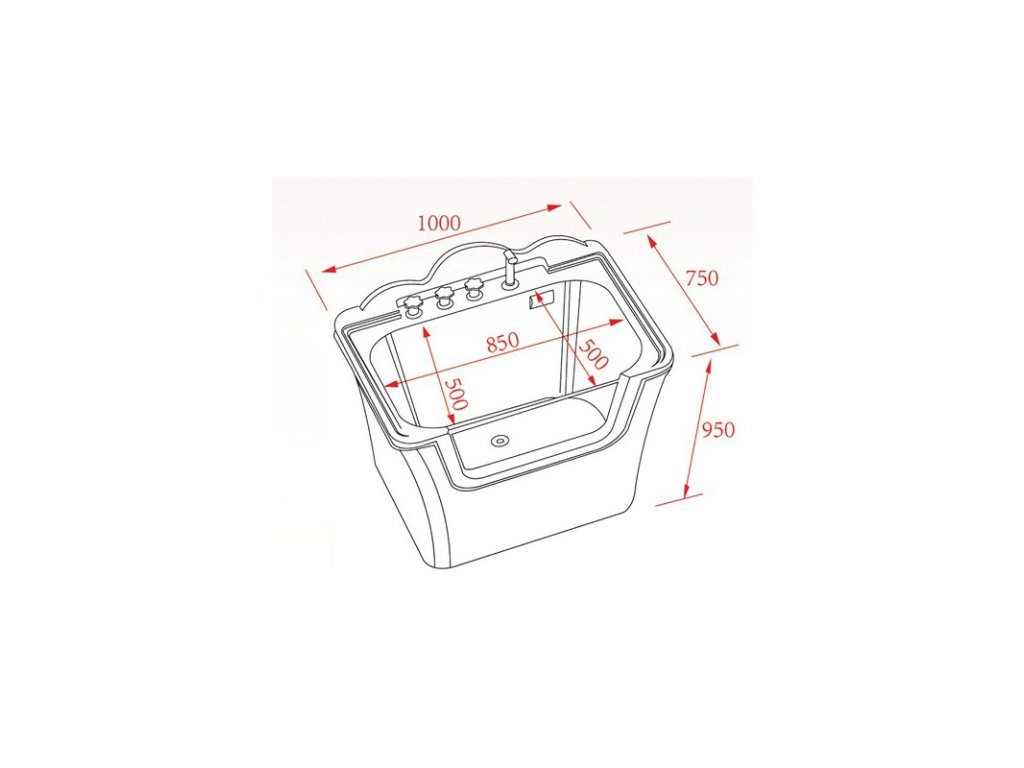 Tato vana je vybavena dvěma SPA funkcemi: intenzivní masážní funkcí a jemnou bublinkovou masážní funkcí s rozsvícenými LED diodami, která nabízí domácím mazlíčkům luxusní zážitek ve SPA lázni. Funkce lze snadno zvolit pomocí ovládacího panelu. Vana má plochý, reliéfní spodní povrch, který umožňuje zvířeti stát nebo sedět. K dispozici jsou dva způsoby vstupu vody: prostřednictvím kohoutku nebo sprchové hlavice. --- Rozměry: Délka: 100 cm, Výška vany: 95 cm, Šířka: 75 cm, Hloubka: 50 cm, Kapacita: 190LDoplňkové parametry