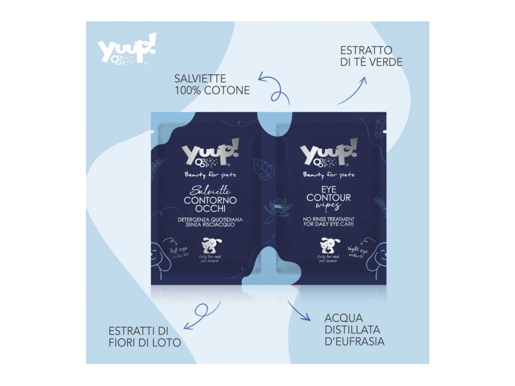 To vše reprezentuje kosmetika Yuup! šetrná k Vašemu mazlíčkovi, k Vám a v neposlední řadě i k životnímu prostředí. Je vyrobena za použití přírodních složek, extraktů, esenciálních olejů, květin a dalších rostlin a využívá maximálně jejich přirozené vlastnosti. Je obohacena o parfémy, pomocné a konzervační látky, které jsou vybírány s ohledem na jejich vysoký stupeň bezpečí a účinnosti. Obaly jsou tvořeny dle konceptu totální transparentnosti jako etická volba pro spotřebitele, pro které je důležitý produkt, který se vyznačuje svým složením a vlastnostmi.